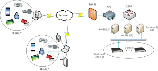 动态口令认证系统内联网解决方案,为内联网提供了强身份认证系统,其解决方案如下图所示: